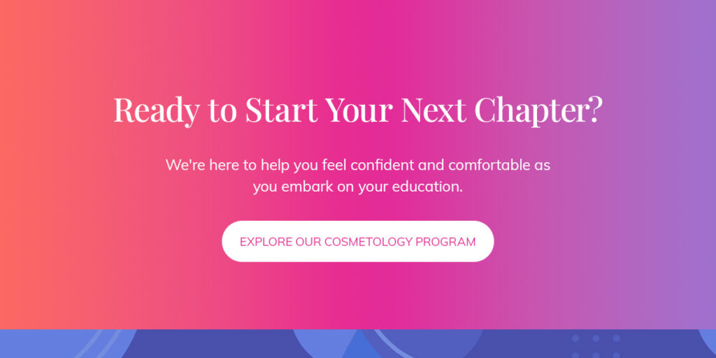 Explore our cosmetology program or reach out to our admissions team. We’re here to help you feel confident and comfortable as you embark on your education. Your career in beauty starts here. Let’s make it great together.